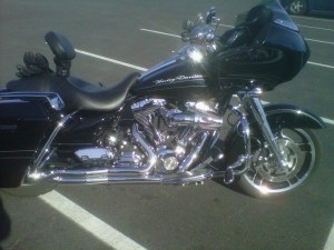 Well I was right. Some one backed up into my bike and knocked out a huge chunk out of my saddle bag and dented my fender. I cannot tell you how mad I was, in fact I was so sick I could not even make myself take a picture of the damage. The Security officers didn’t even care and the more upset I got the less they cared. I hope everyone who rides reads this blog and no one stays at the Aquarius in Laughlin.