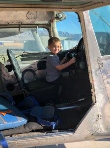 Here Mason is sitting in the cockpit of the exact plan I flew when I was skydiving. I cannot believe it is still able to fly.