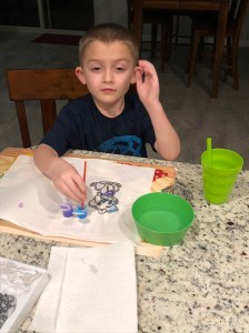 Mason doing another art project. He sure loves art. But what I’m really impressed with is his reading skills. He isn’t even in First Grade and he can read really well.