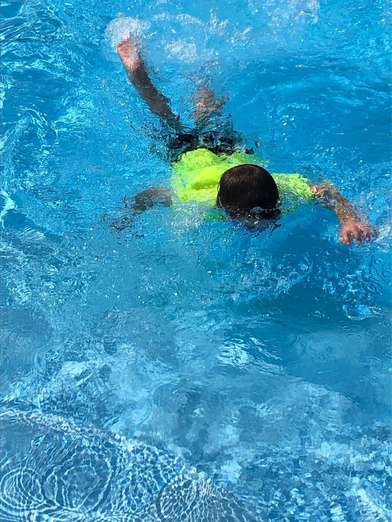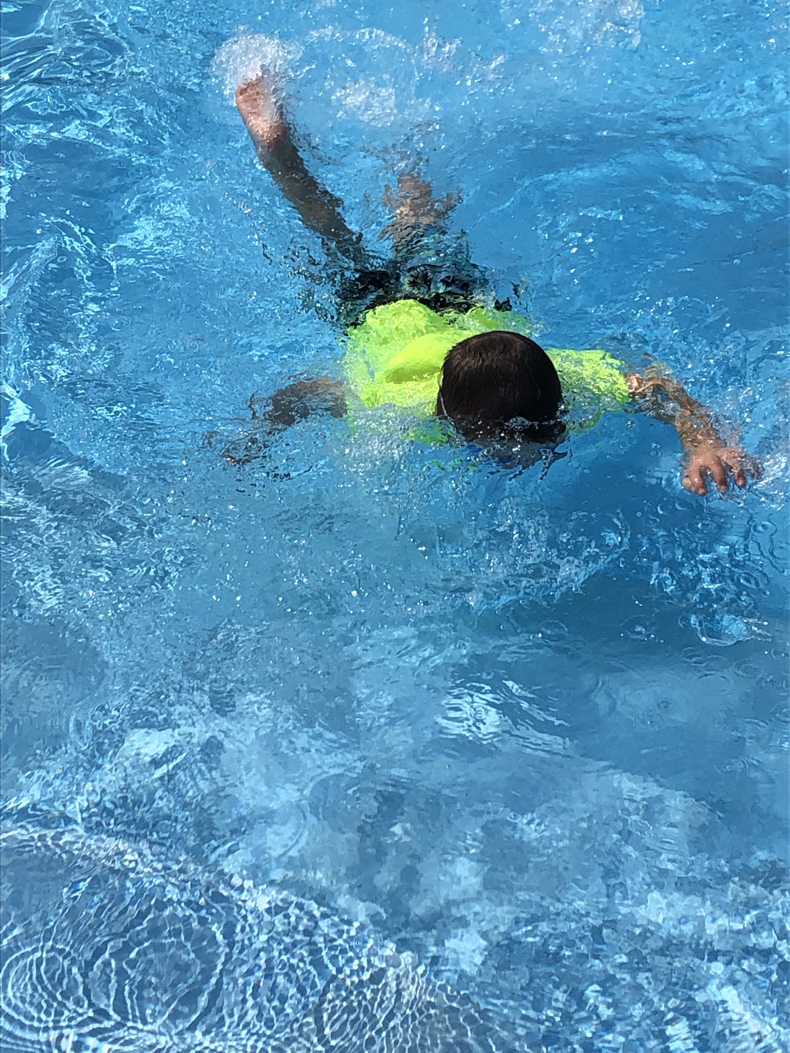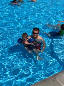Here is Mason swimming with his dad. The pool was huge. The kids swam for three full days and loved every minute