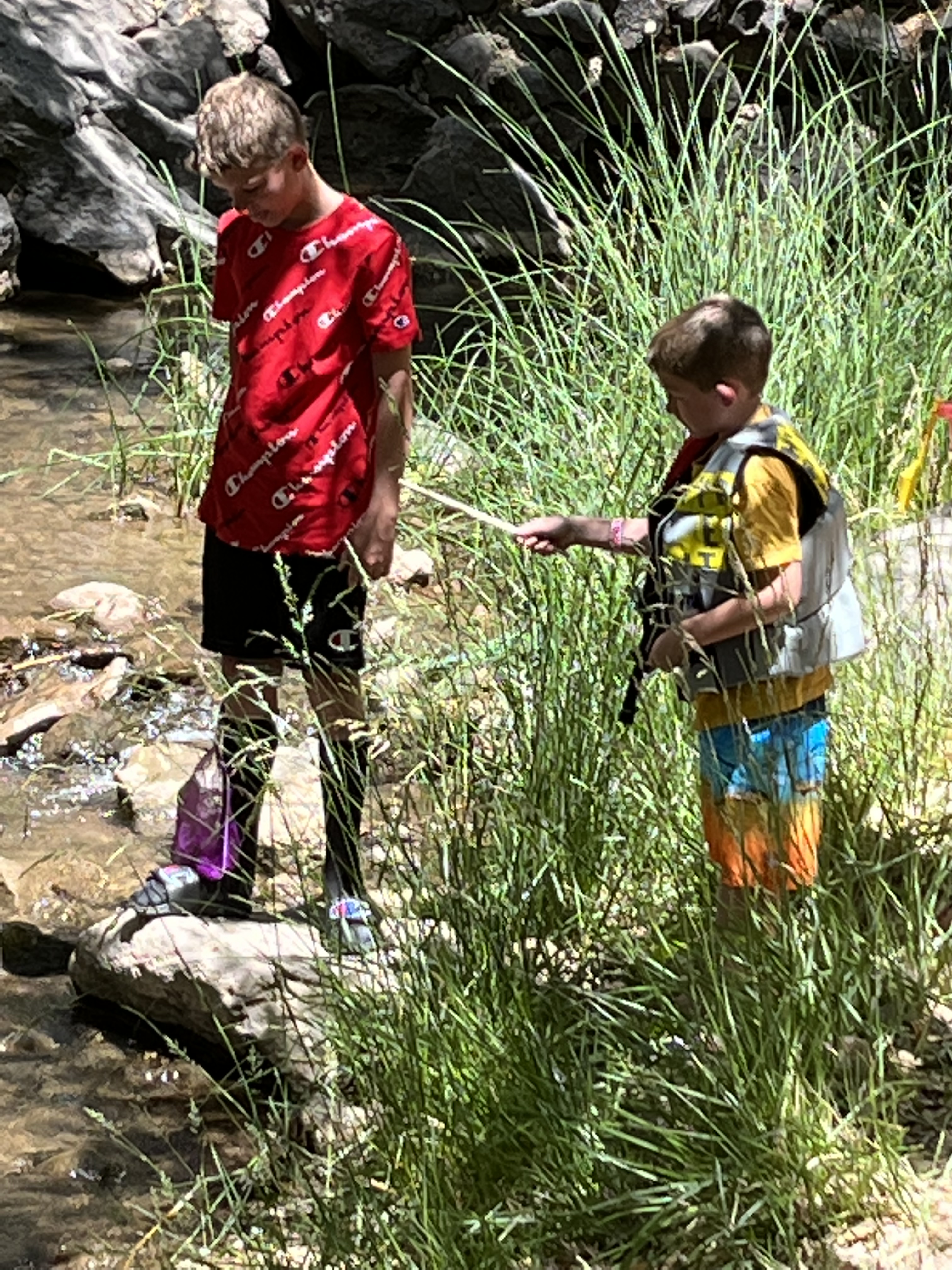 This is Mason fishing for the Crawdads. he likes fishing for them but not catching them. He didn’t want anything to do with them after he caught one. Talon on the other hand liked catching them.