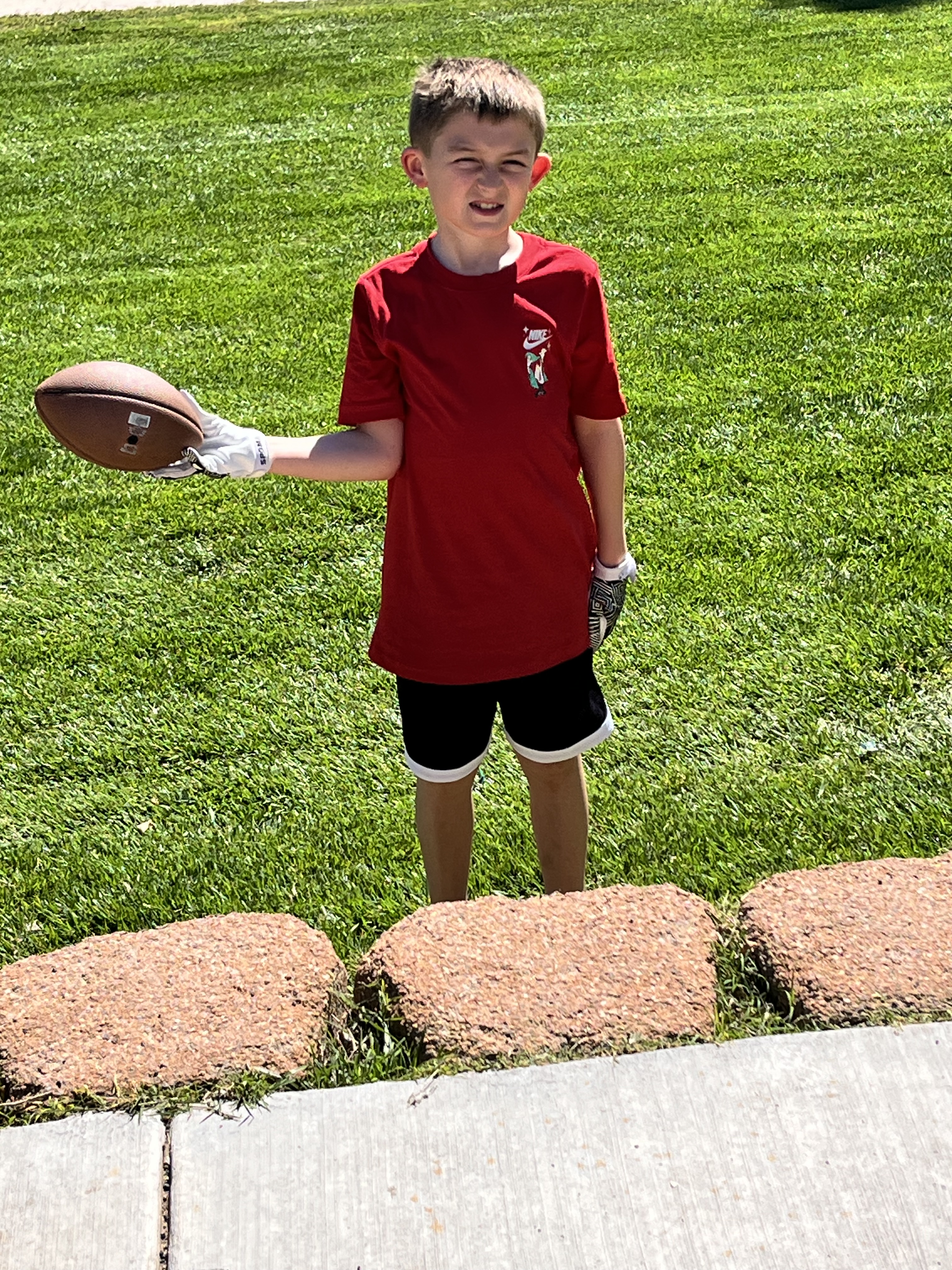 Mason is so excited to play Flag Football this Summer. He’s really good at passing and catching the ball. We cannot wait to see him play.
