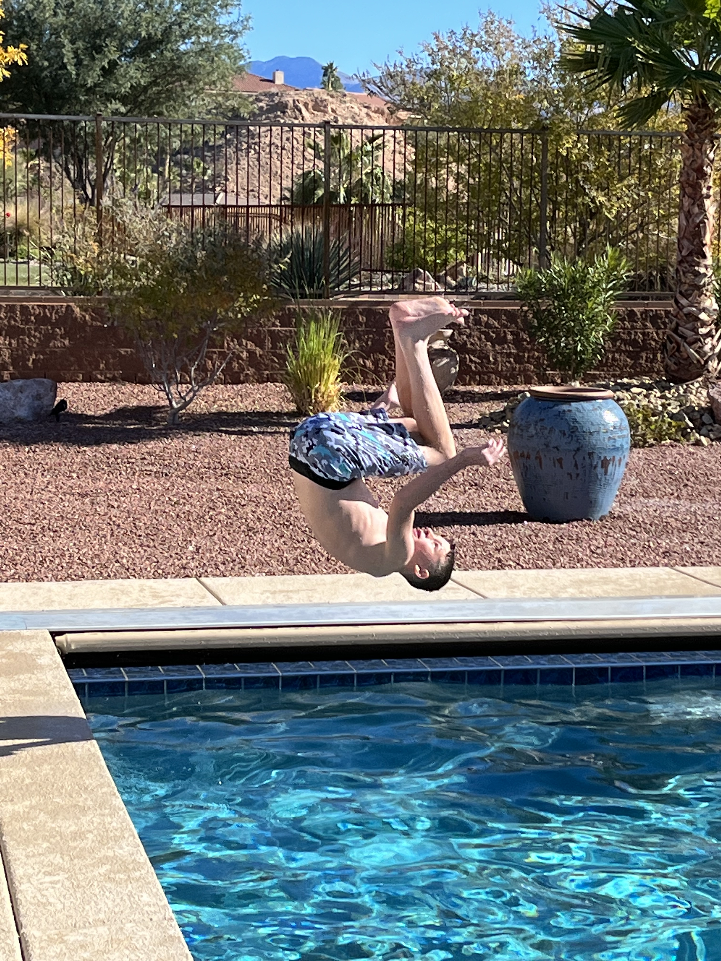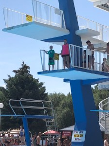 Talon and Tonianne both jumping off the five meter platform. I cannot believe they did it. Five meters is high. Not to be out done by Talon Tonianne jumped off the ten meter.