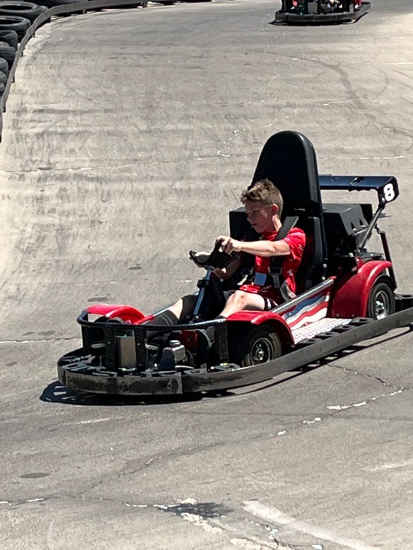 We swam, went bowling and even raced the Go Carts. Talon is now tall enough to drive his own car.