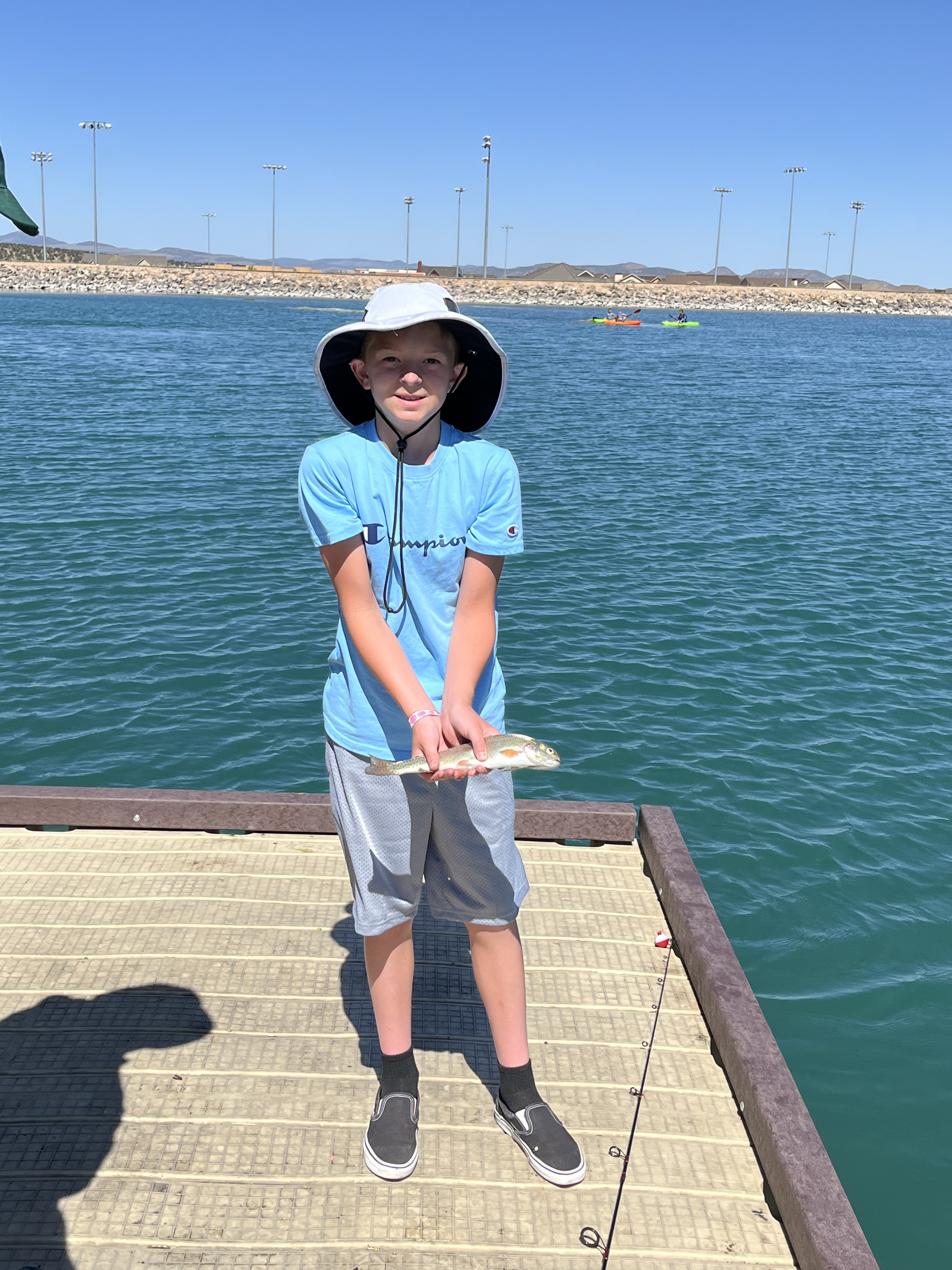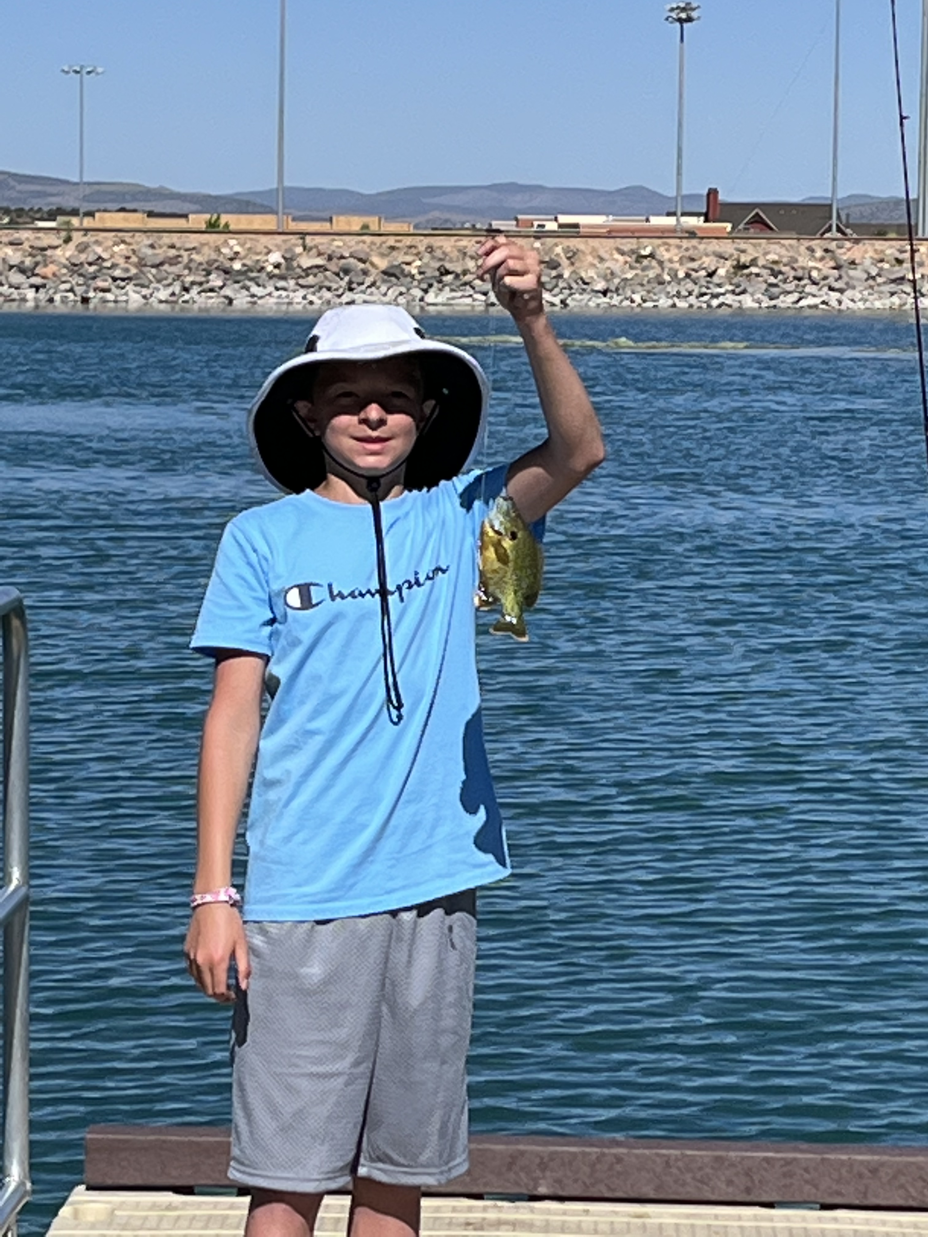 Then we went fishing and he caught his first fish. it was a Blue gill