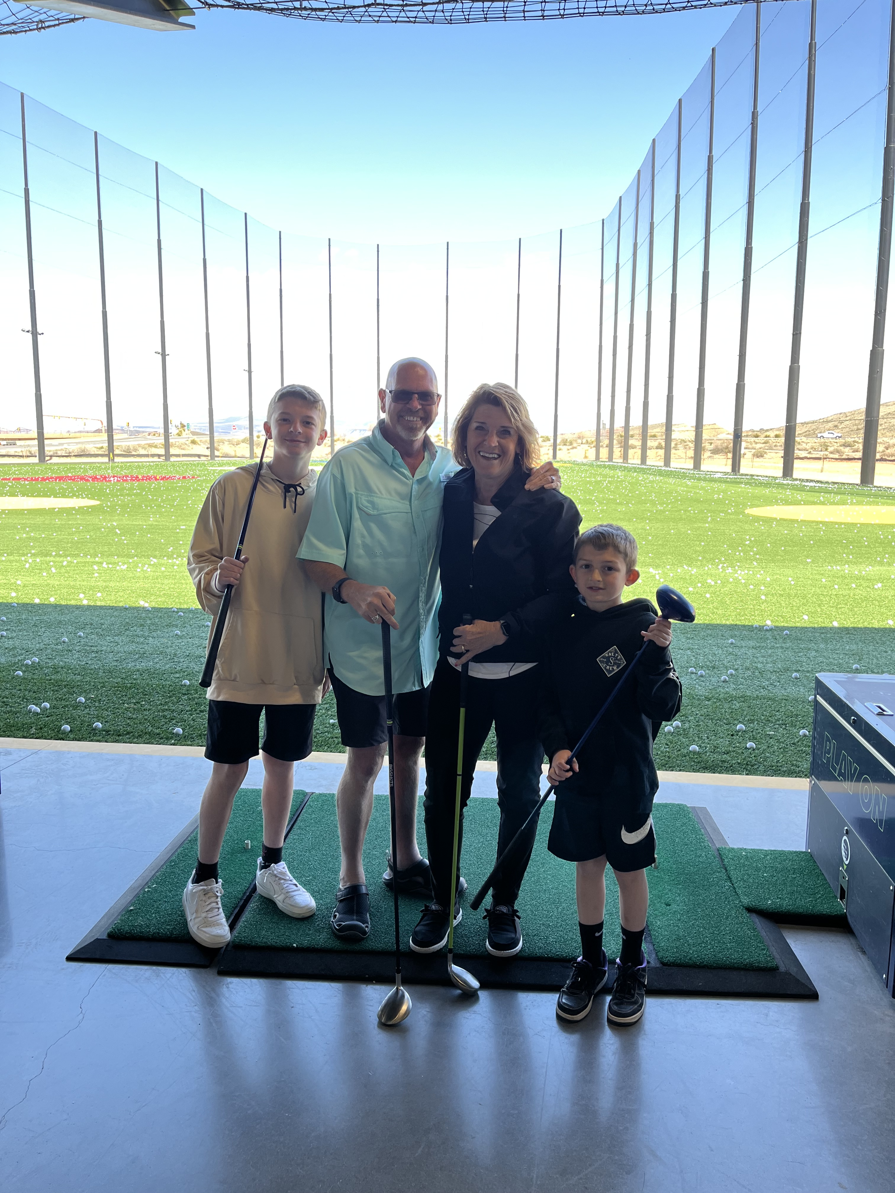 Here we are at Top Golf. It’s official, Talon is the tallest person in our family and he’s only fourteen. He is also the longest driver in the family. He can really hit the golf ball a long ways.
