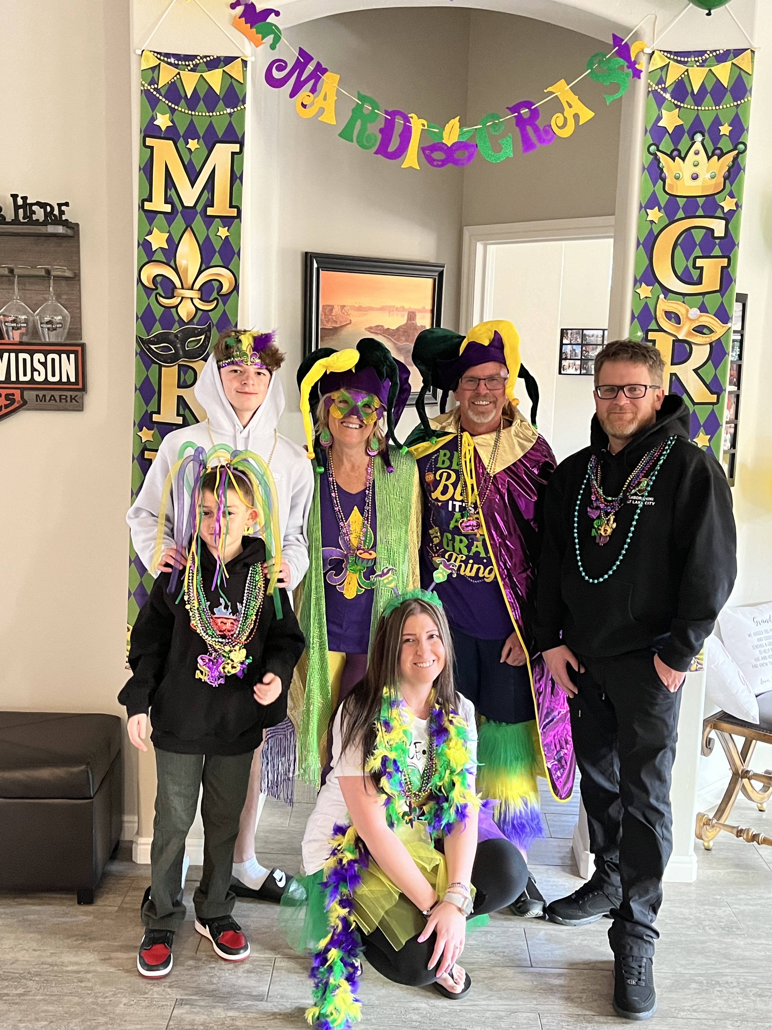 Another Fun Mardi Gras in Mesquite. The boys had a wonderful time. Thanks For Talon. He was the only person tall enough to hang up all the decorations.