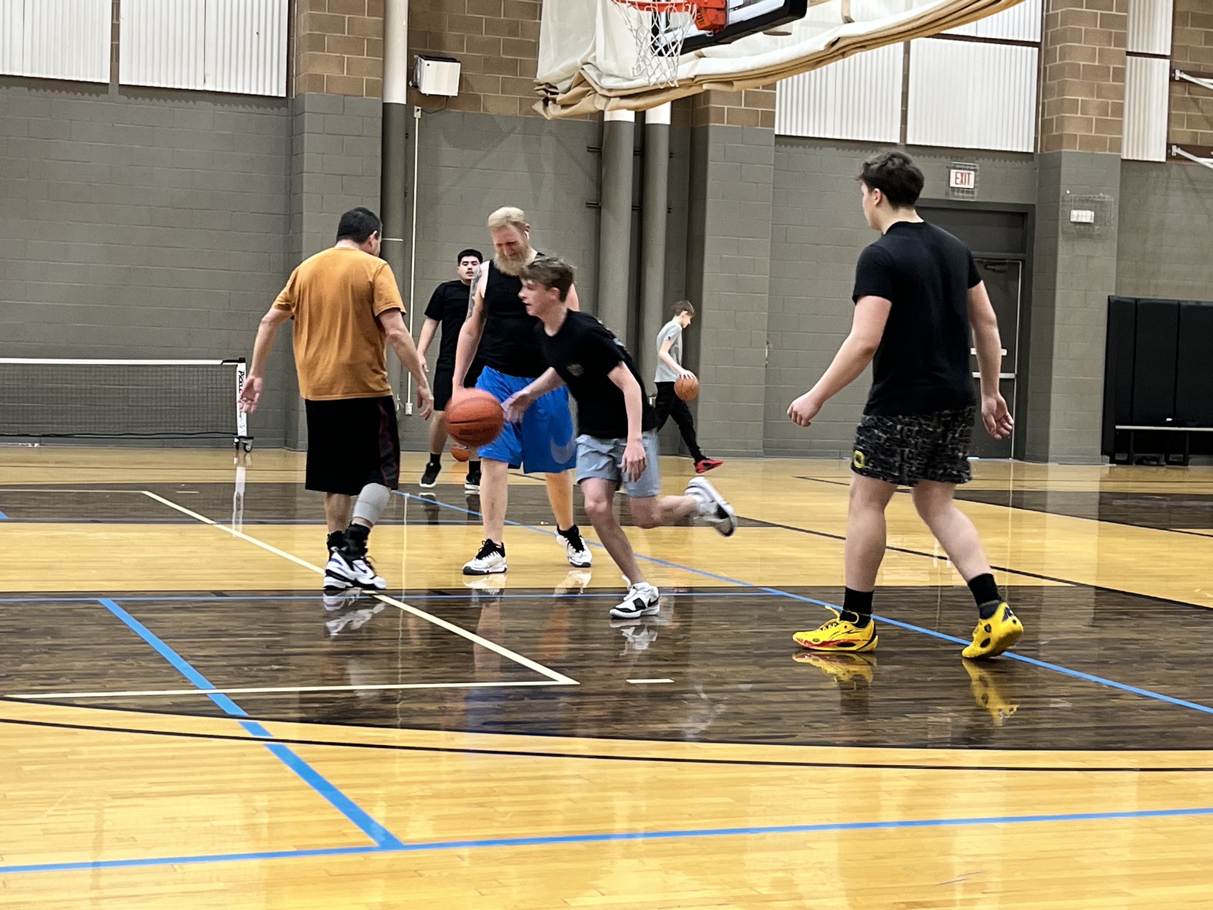 Talon is getting so good at basketball. He played in a pick game with all adults at the Rec Center in Mesquite. He played so well he was responsible for either shooting or assisting for half of all the points they scored.