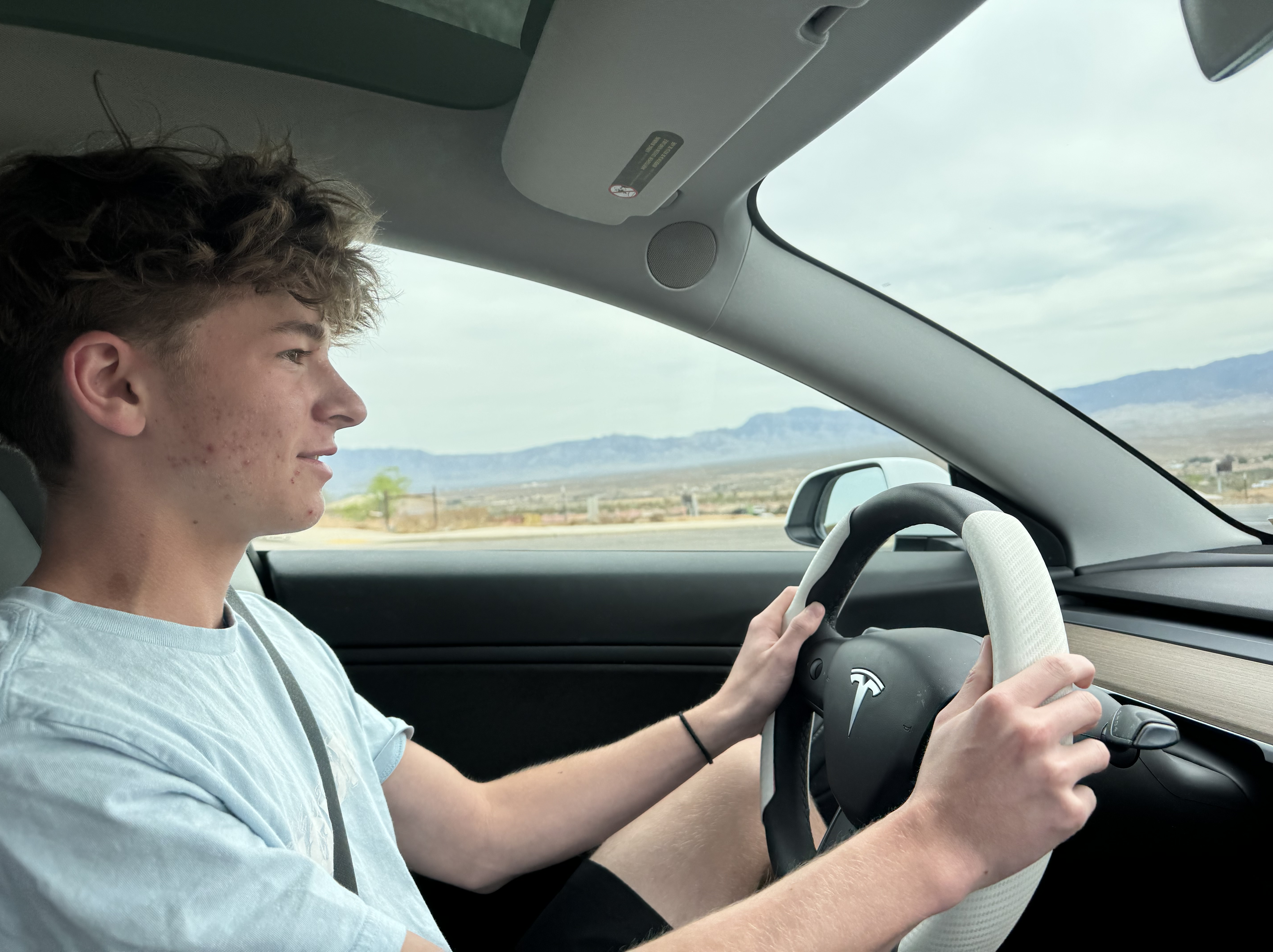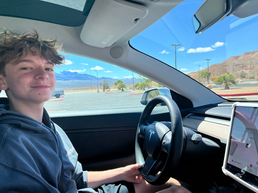 Talon first time on the open road. In between swimming and basketball Talon spent the day driving all the roads in Mesquite. He’s a natural. He’s here all week so I’m thinking by Thursday or Friday I will have him on the Interstate. For his first day behind the wheel he did great and feeling comfortable.