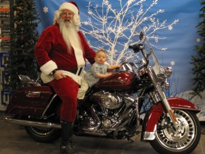 It took us about five minutes to take the picture because Talon just wanted to look at Santa and the cool motorcycle, he did have his hand on the grip. Talon knows what he’s doing. As soon as his legs are long enough he will be ready to ride!!!