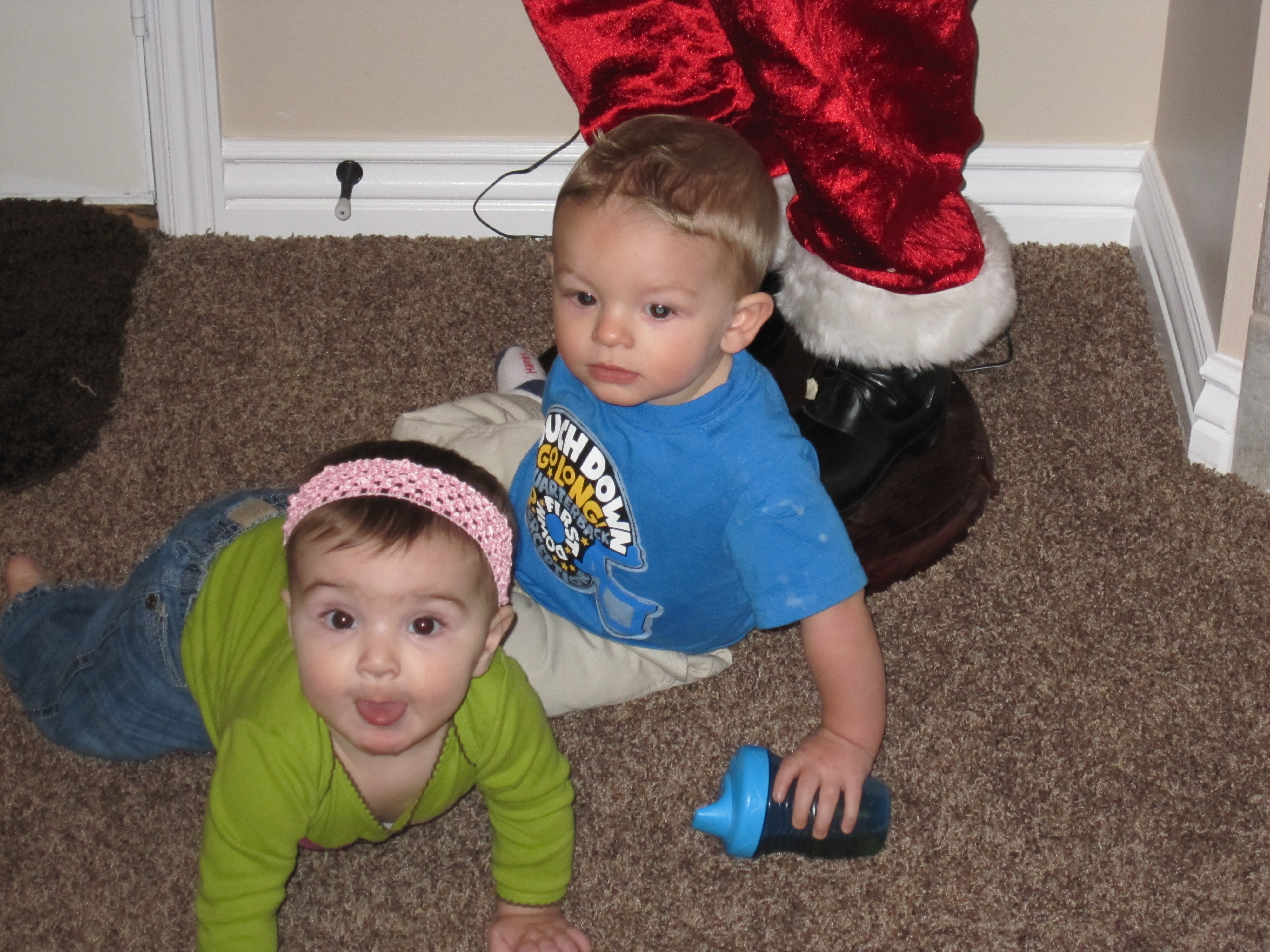 Talon’s a player he now has his first girlfriend. Skye has to do everything Talon does…. Well accept playing with his toys, Talon’s still not so keen on anyone playing with his toys. He did give her a couple pointer on crawling that helped her out.