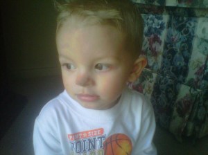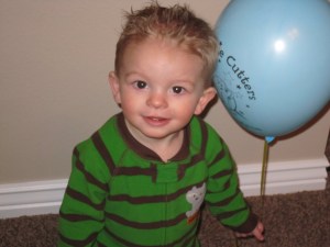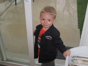 His Birthday cake with three candles. I think with everything he got from all of his great grand parents, Jon’s parents, his Aunt’s and Uncles, Tonianne and Jon and Linda and I. He had a pretty good day.