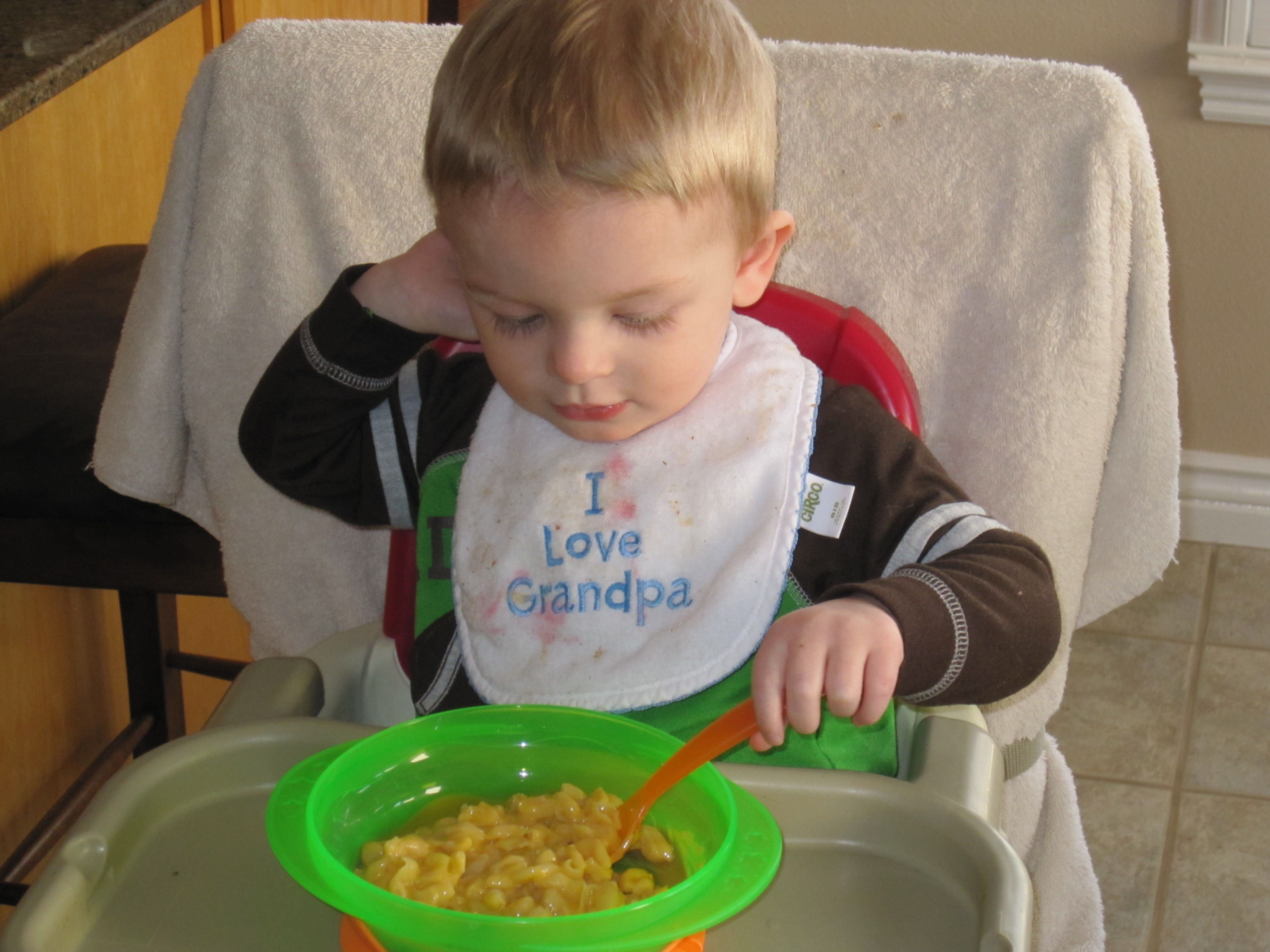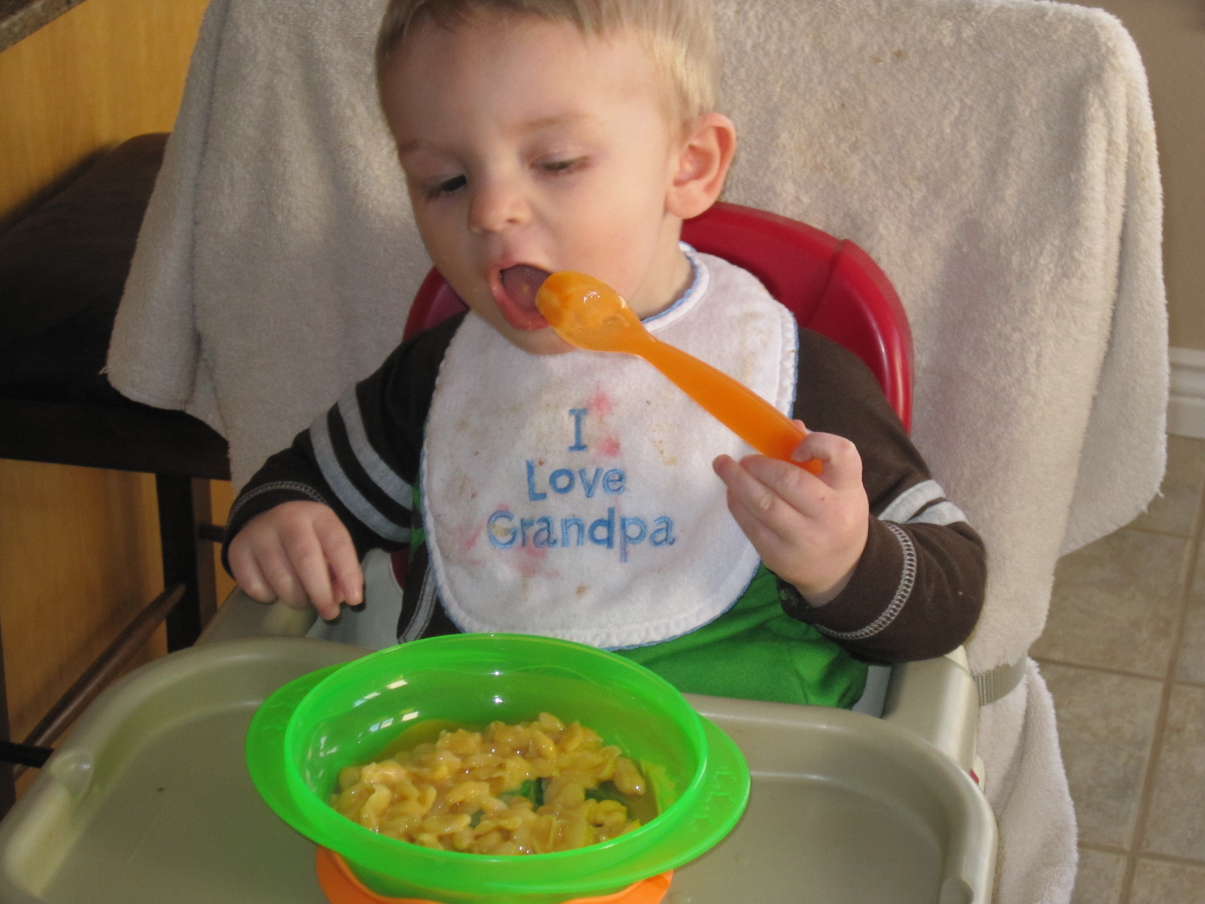 Also notice which hand he uses to feed himself. That’s right he’s going to be a lefty…. I knew he was going to be smart the first time I laid eyes on him.
