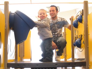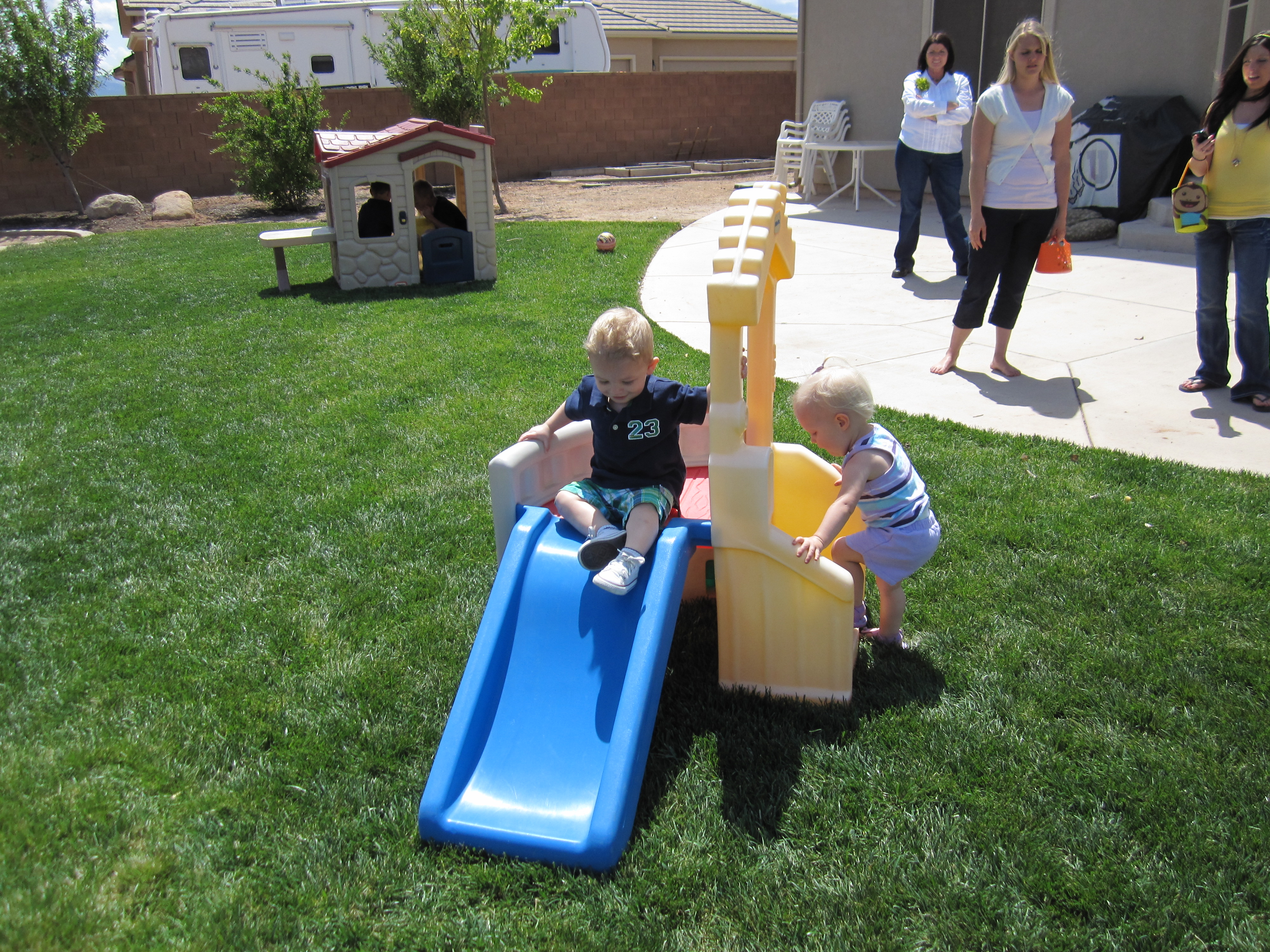 For not being around a lot of kids he sure does play well with them. these two just kept on taking turns going down the slide. Talon was good with her because it took a few more seconds for her to climb the steps and then sit down, Talon would just wait and take his turn.