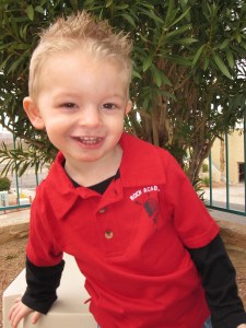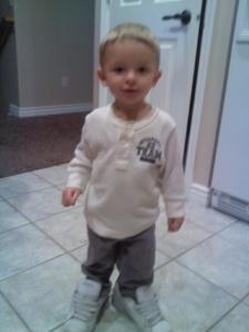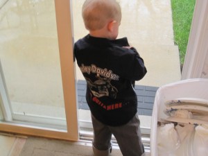 This is a great picture. We went over to my mother’s house and Talon would go outside the push his nose up against the screen and laugh like crazy. What he didn’t know was how dirty the screen was so he got this big dirty spot on his nose. I made him sit down so I could take the picture, you can see it in his eyes this kids want to be outside, we cannot wait until summer.