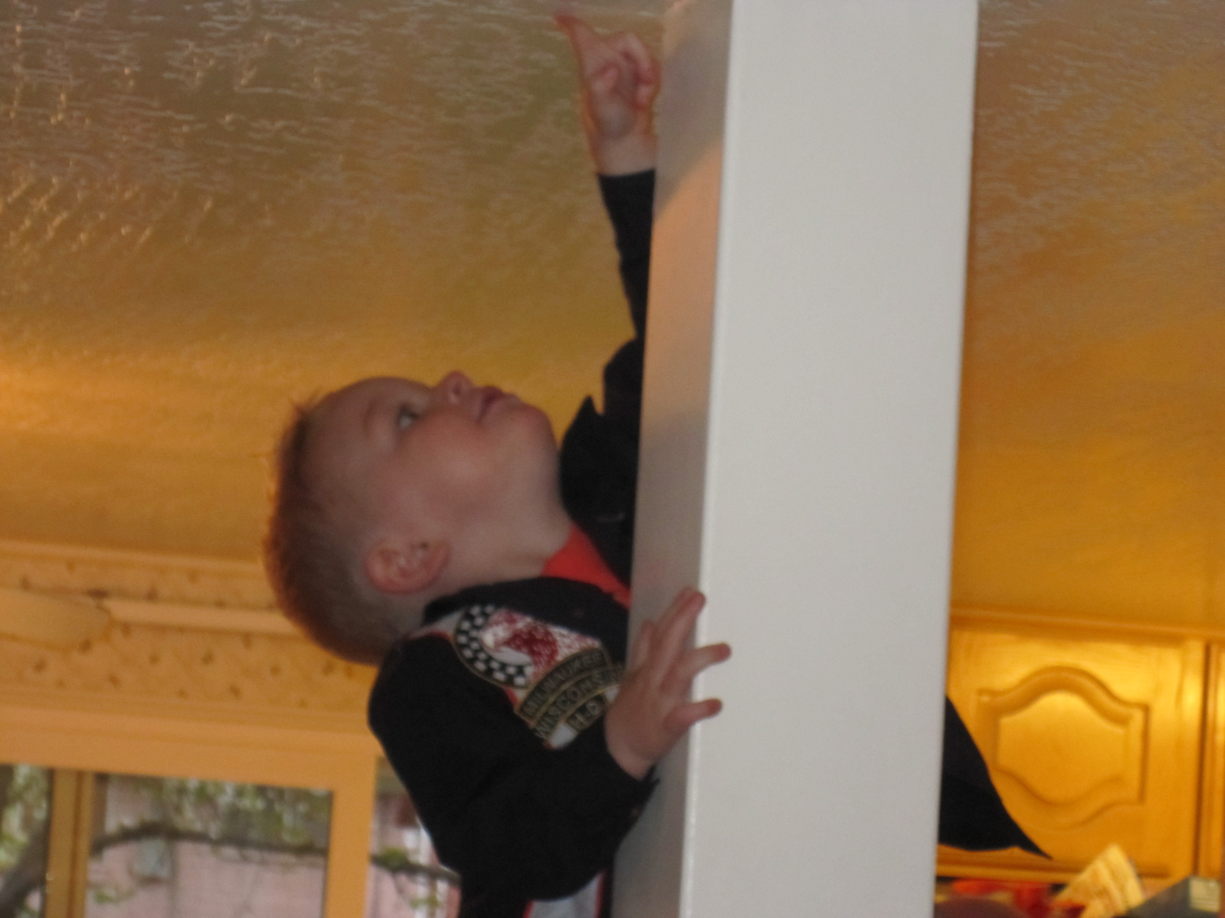 He made it all the way up the pole!!! He’s going to ring the bell and slide back down I think he has the new worlds record in house pole climbing.