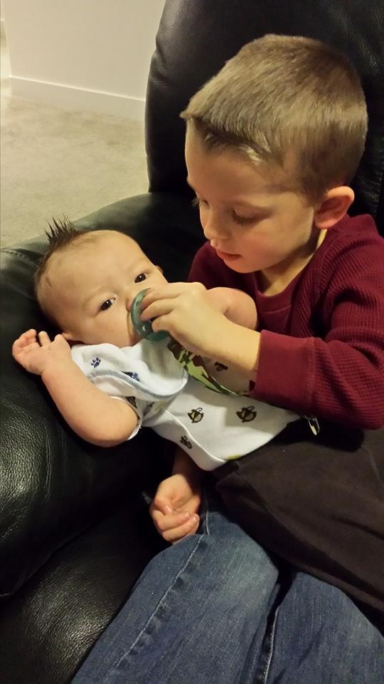 Talon is the best big brother any kid can have. When Mason starts crying Talon either starts talking to him or my favorite he sings to him, I have to tell you that is the cutest thing you will ever hear.