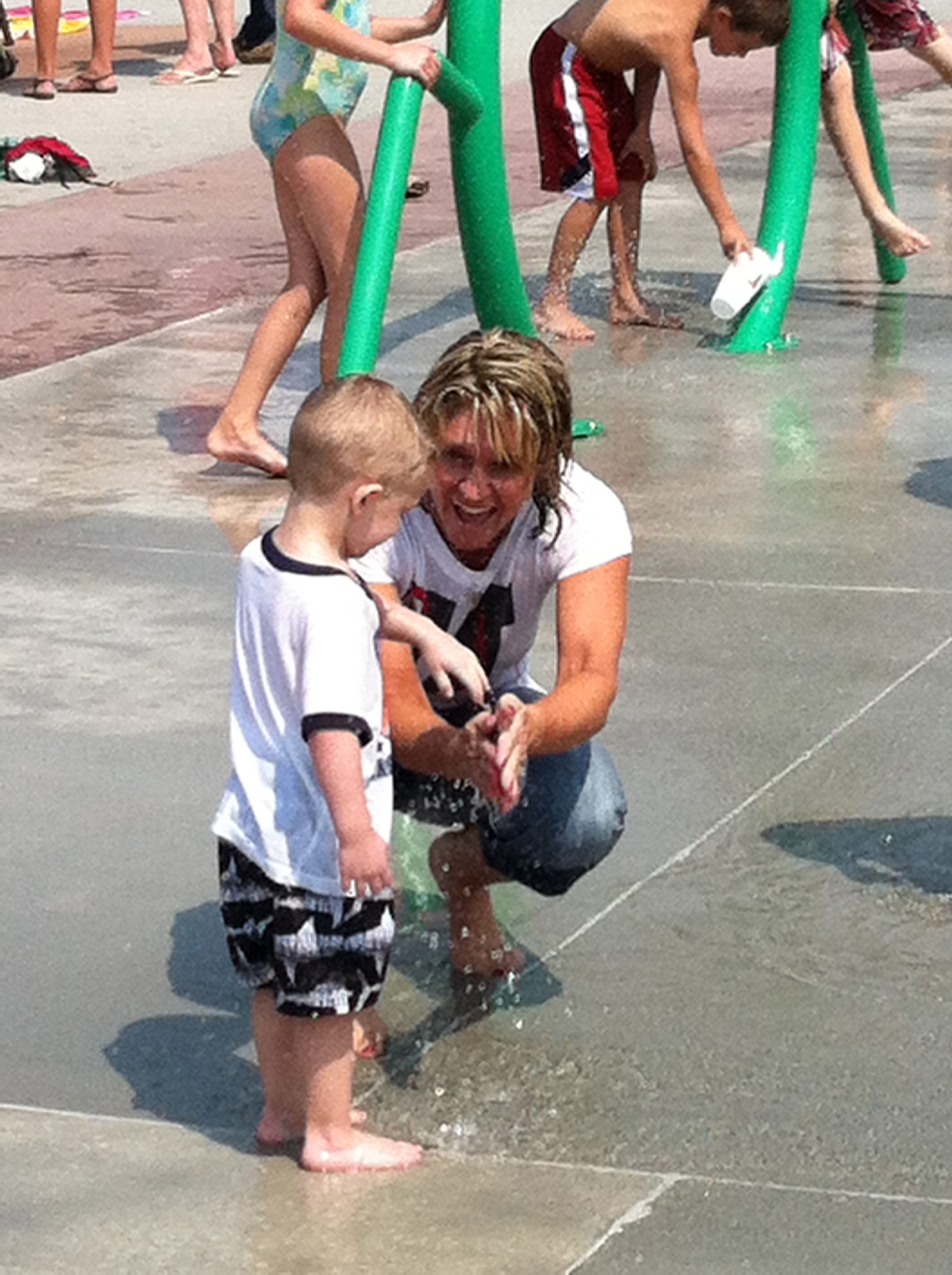 Grandma and Talon playing at the water park. It took about 20 minutes and Linda running through the water before Talon would go in. He’s not big on trying new things but after he started running though with Grandma in tow he didn’t want to go home.