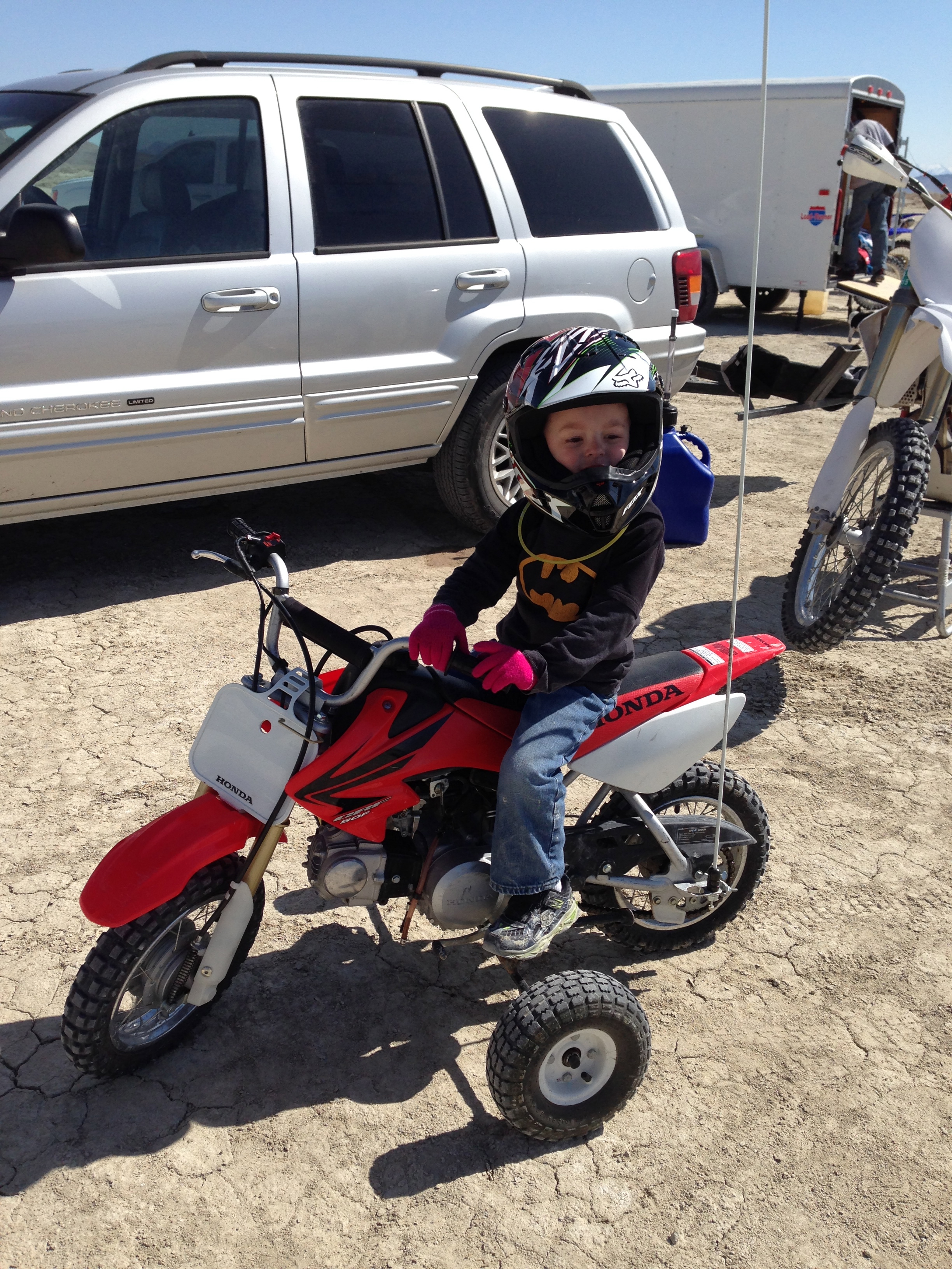 Talon riding his first motorcycle!!! so it has training wheels it is still way cool. Jon took Talon out for an over night camp out in Dele and Talon got to ride the motorcycle the next day.