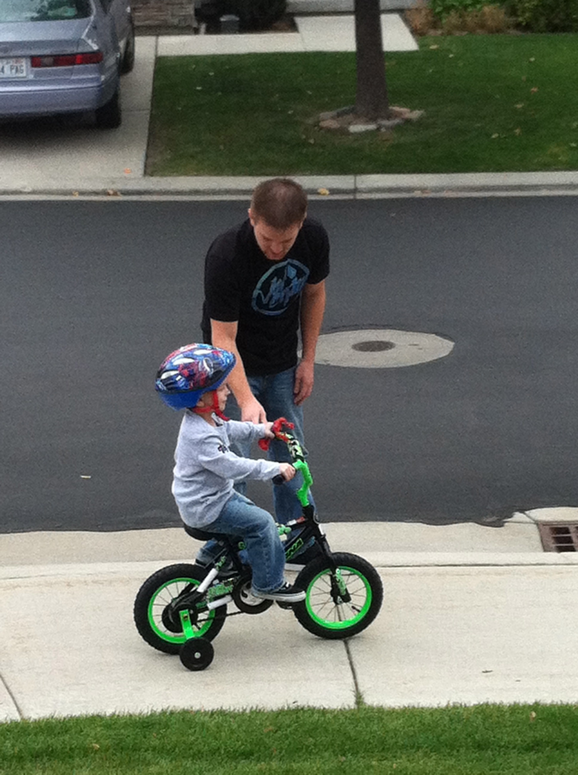 Talon’s Birthday and here he is Riding his new bike he got from Grandma and Papa but he had to have a Spiderman helmat.