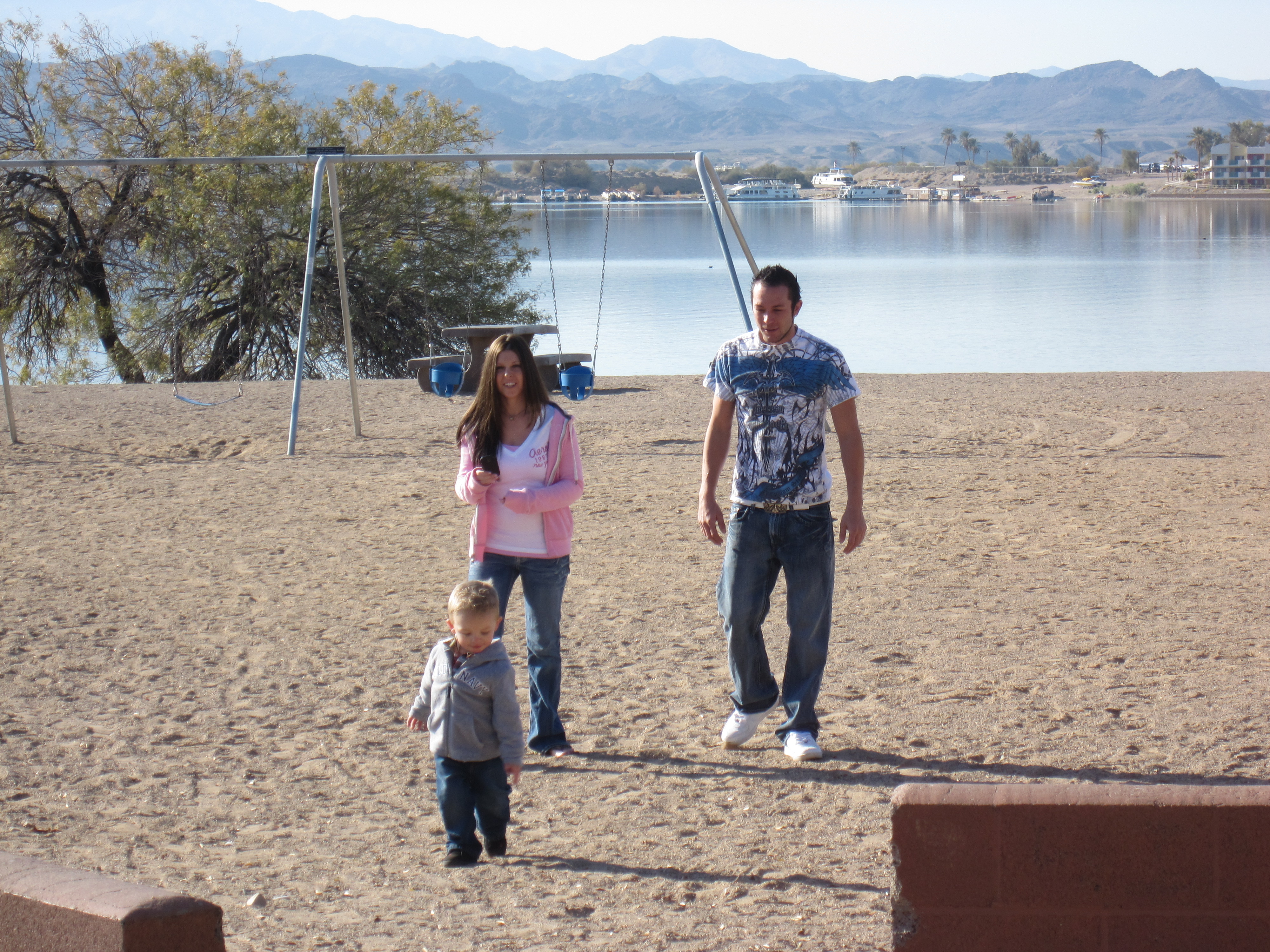 Toni and Talon feeding the geese in Mesquite. Talon was so funny as soon as put him on the ground to feed the ducks and geese you would have thought the ground was on fire the way he jumped right back up into my arms.