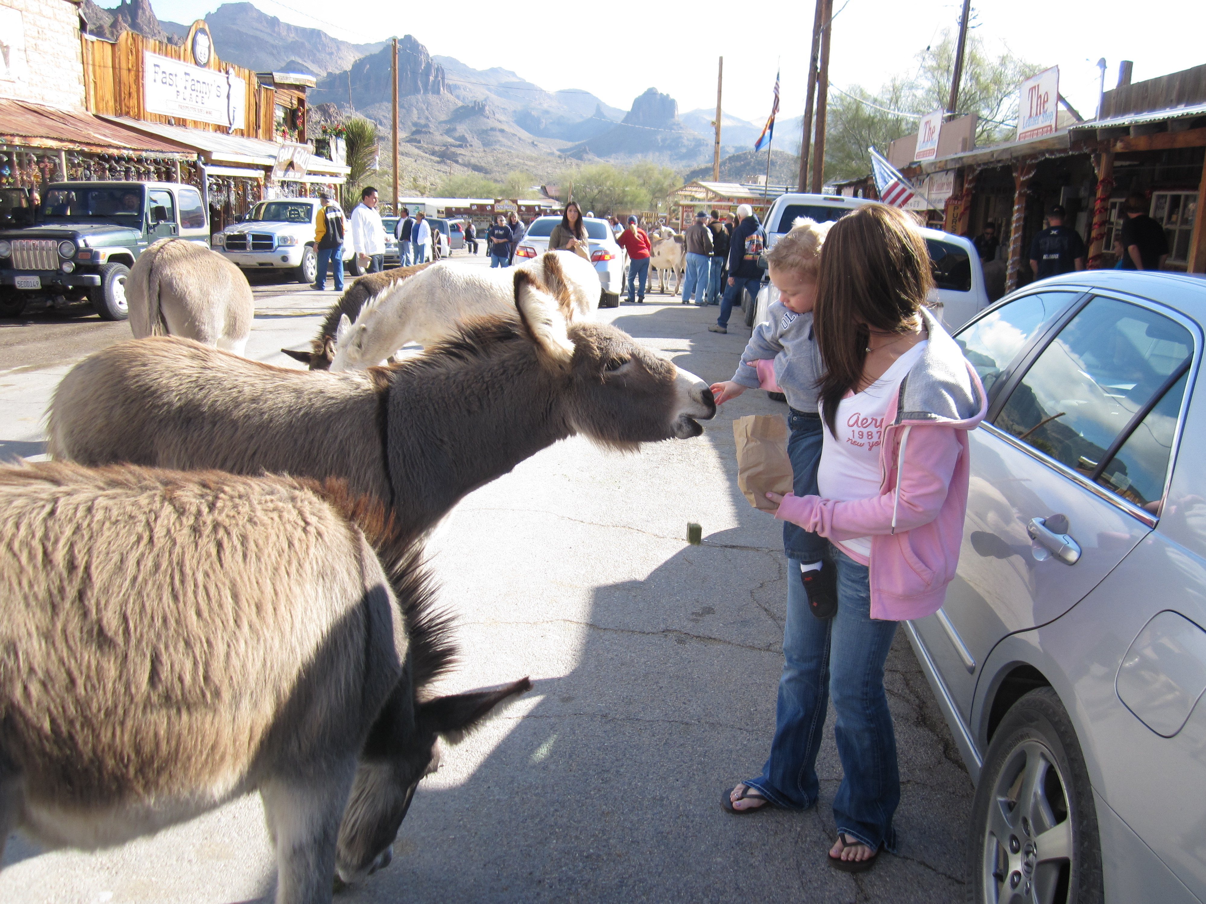 We also went over to Oatman AZ, it is right on Route 66 and it’s an old mining town that is getting over run with burrows but that is half of the fun. Here Talon is feeding the Burrows, but like the geese he likes the animals as long as you are holding him.