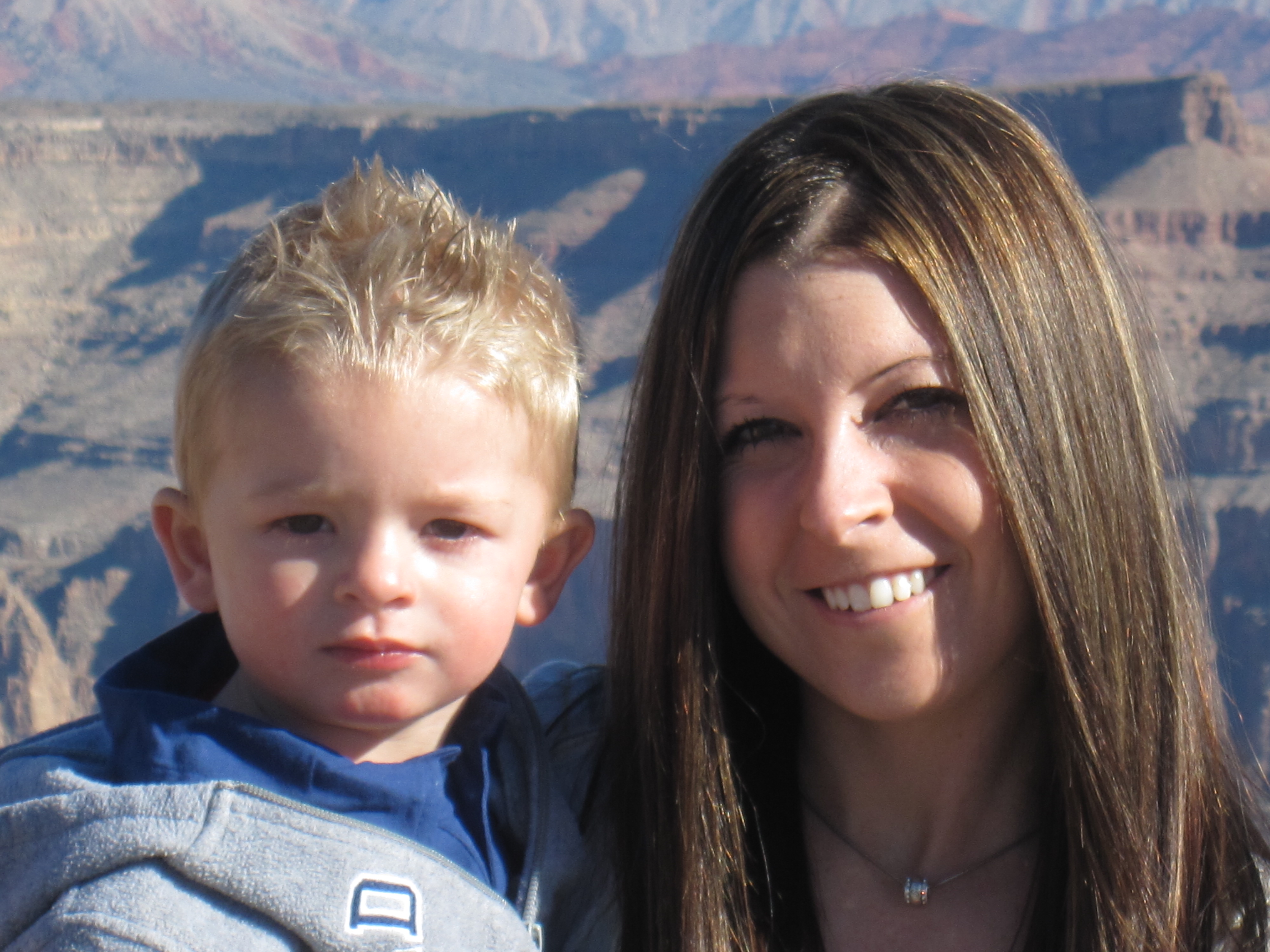 While we were in the area we drove over to the Grand Canyon and went to the Sky Walk on the West side. It was so cool but scary looking down 4,000 feet. This it Toni and Talon just after we took the walk. I think Talon is still in shock although he did fine it was Linda who had a few issuses on the Sky Walk. We all made it off safe and noone cried so I guess that is success.