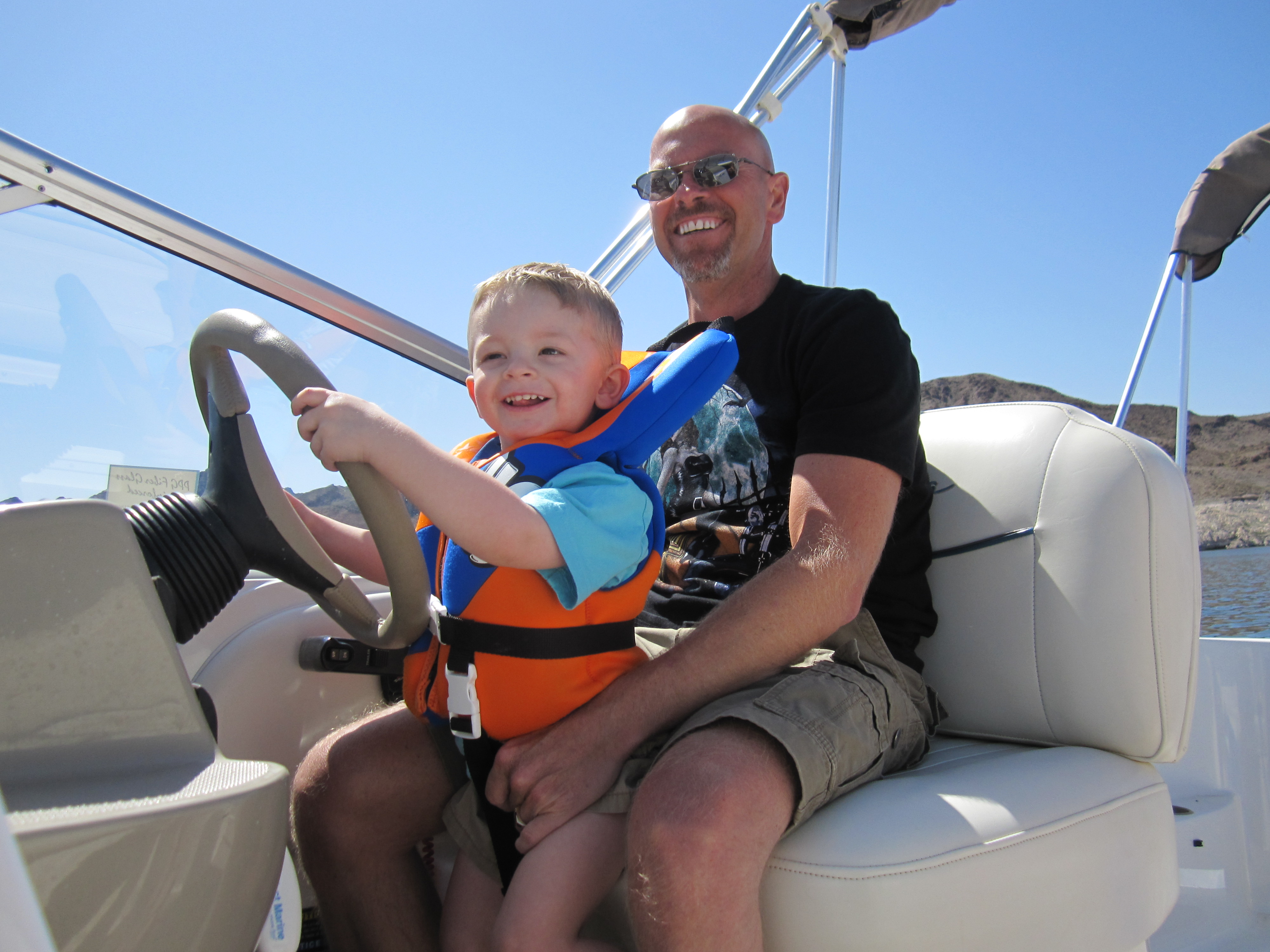 Talon’s new title is “Captain” He took us all over the lake. It was so funny, Talon got so tired he fell asleep with his head against the steering wheel.
