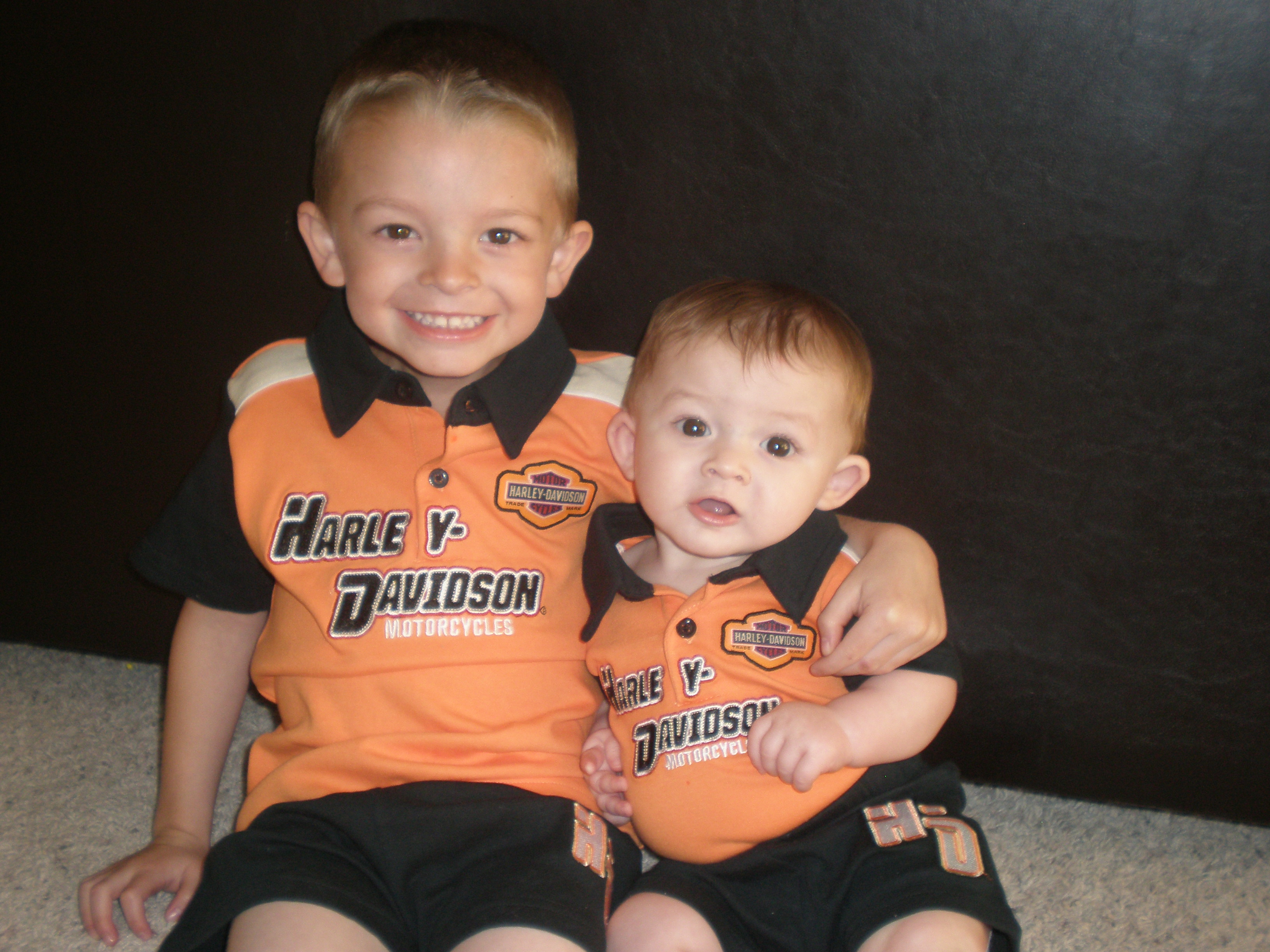 Great picture of Talon and Mason in their Harley Davidson clothes.