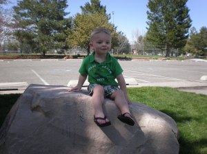 Now that it’s warm outside Talon has to be outside all of the time, Tonianne got him to sit still for a minute to take this picture of him on the rock a the park.