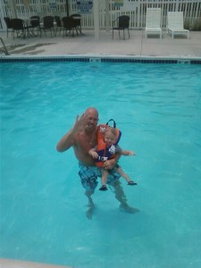 Jon helping Talon learn how to swim. The trouble with swimming is not the swimming part it’s getting Talon out of the pool that is the trouble. He could stay in there all day and night if you let him.